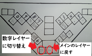 レイヤー①、レイヤー②、レイヤー③には、文字が割り当てられていない空白があります。